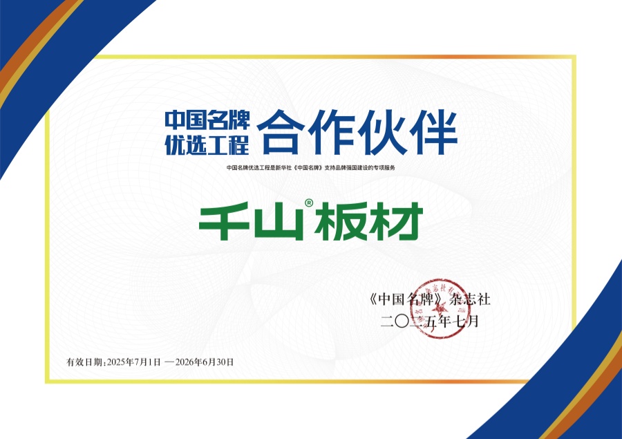 7月23日,千山集團傳來重磅喜訊——憑借卓越的產(chǎn)品品質、深厚的品牌積淀與領先的行業(yè)影響力,千山板材成為中國名牌優(yōu)選工程合作伙伴。這一榮譽不僅是對千山多年來堅守品質、創(chuàng)新發(fā)展的高度肯定,更標志著千山發(fā)展邁入全新階段。 中國名牌優(yōu)選工程是新華社《中國名牌》支持品牌強國建設的專項服務,旨在推動中國品牌發(fā)展,