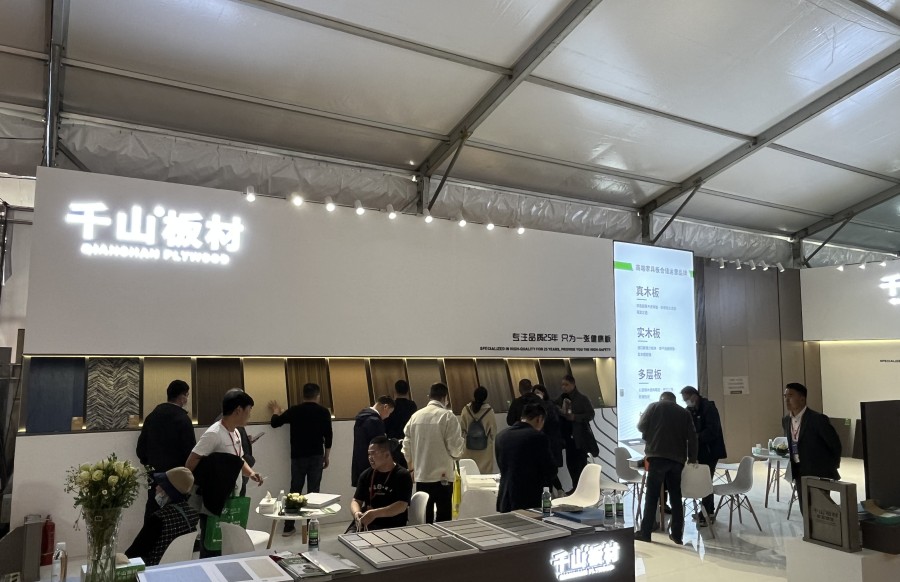 此次展會,千山以“高端家具板”為主題,打造簡約、有設計感的體驗場館。其中,家具板新品真木板、實木板、同色室內門備受關注,吸引眾多觀展客戶圍觀咨詢。
