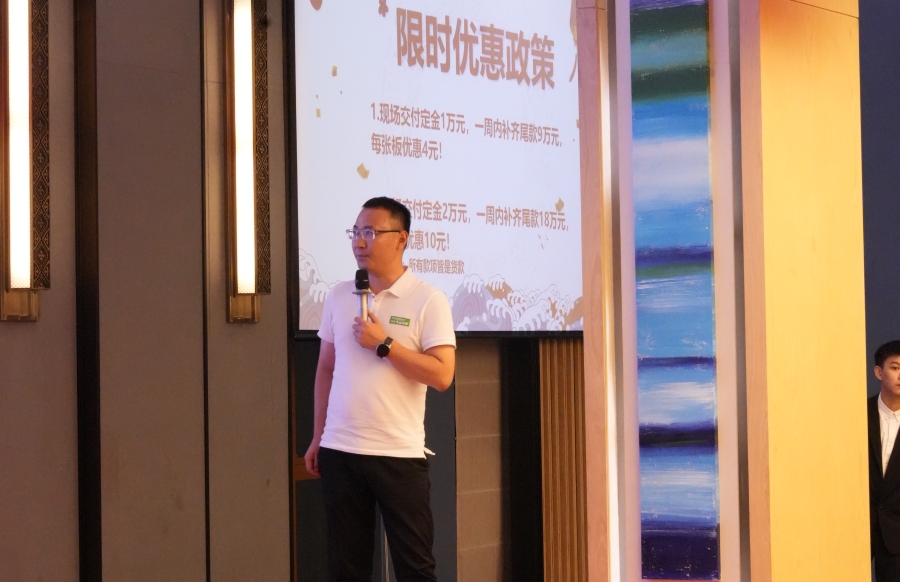 大會現(xiàn)場,滿經理對家具板招商政策進行詳細解讀。對于合作家具廠,千山將提供全方位的政策支持,包括樣冊支持、樣柜支持、區(qū)域保護、培訓支持、廣告支持、抖音扶持、訂單引流 ,積極助力市場開拓和產品推廣。