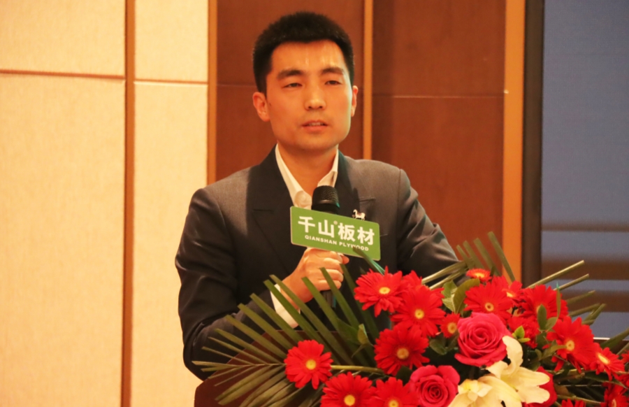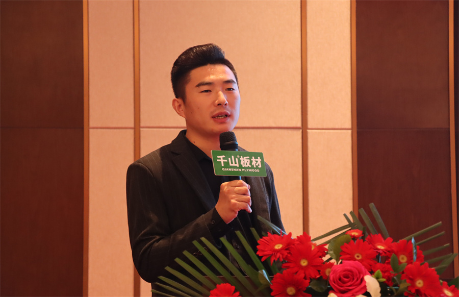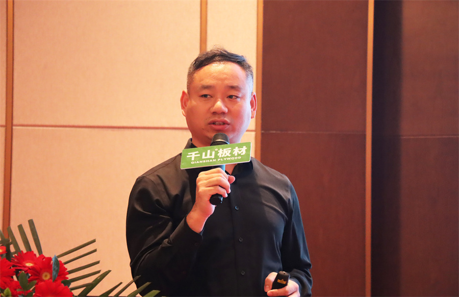 山東直營倉區域經理曹全震,帶大家回顧了千山的發展歷程。曹總分享到,千山家具板精準把控市場需求,通過品類優勢,持續圈粉消費者,接下來也將堅持創新、不斷升級產品。