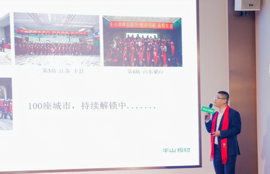 千山板材區(qū)域經理孟曉圍繞生產實力、企業(yè)文化、業(yè)務模式等,生動描繪了千山26年的發(fā)展歷程,傳遞了千山“以推進健康、時尚,潮流家居、裝飾材料為已任,引領行業(yè)新潮流” 的品牌使命。
