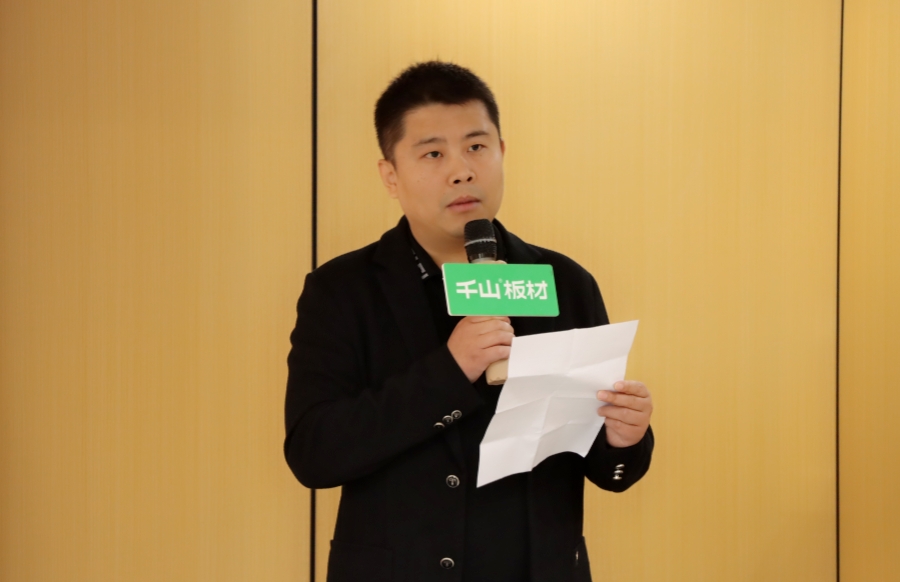 千山品牌事業部總經理王松發表講話,王總對各位伙伴的到來表示歡迎。王總分享到,全屋定制工廠和家具廠一直是千山關注的重點,千山家具板現貨倉的快速布局順應了全屋定制訂單制和板材倉儲式的必然趨勢。山東倉和四川倉的成功啟動是全國現貨倉戰略布局的良好開端,相信現貨倉一定會助力定制工廠的伙伴們實現更快發展。