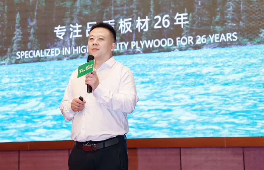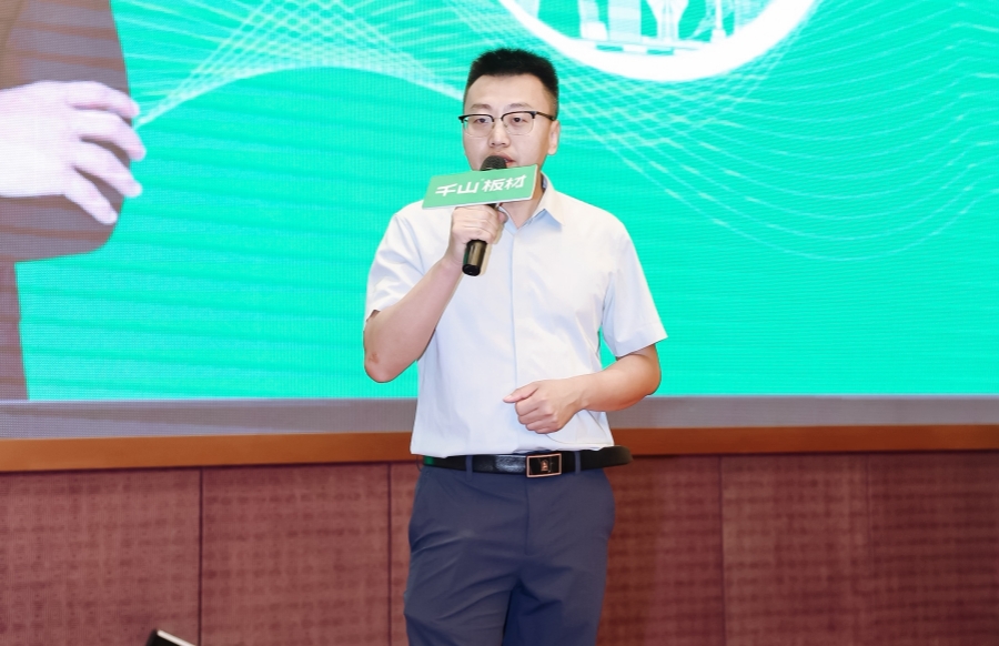 千山板材盤錦倉負責人張穎致辭。張總表示,盤錦倉始終秉持著千山板材的品牌理念,憑借品質和服務,贏得了市場的好評。過往成績的取得,離不開所有合作伙伴的支持和努力,未來可期當攜手共進。
