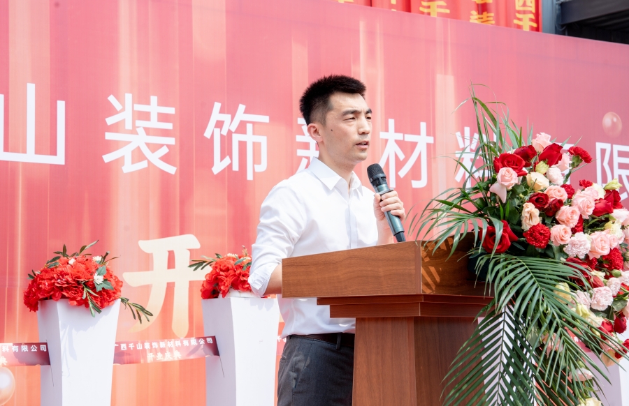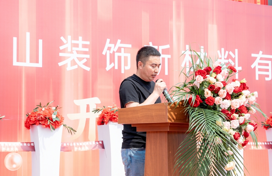 隨后,廣西千山裝飾新材料有限公司總經理邵廣峰發表講話。邵總表示,廣西生產基地將秉承集團的發展宗旨,在政府和協會的領導下,整合利用市場資源優勢,加強管理、提升技術,以高昂的熱情積極投身于各項生產經營活動,助力集團的高質量發展,同時為推動行業的發展作出應有的貢獻。