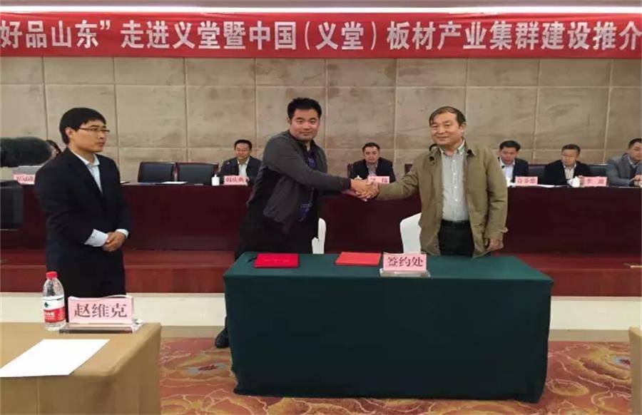 2016年10月28日,“好品山東”走進(jìn)義堂暨中國(guó)(義堂)板材產(chǎn)業(yè)集群建設(shè)會(huì)議在臨沂市成功召開(kāi)。千山作為板材企業(yè)代表與“好品山東”現(xiàn)場(chǎng)簽訂戰(zhàn)略合作協(xié)議,進(jìn)一步提升品牌競(jìng)爭(zhēng)力和影響力。