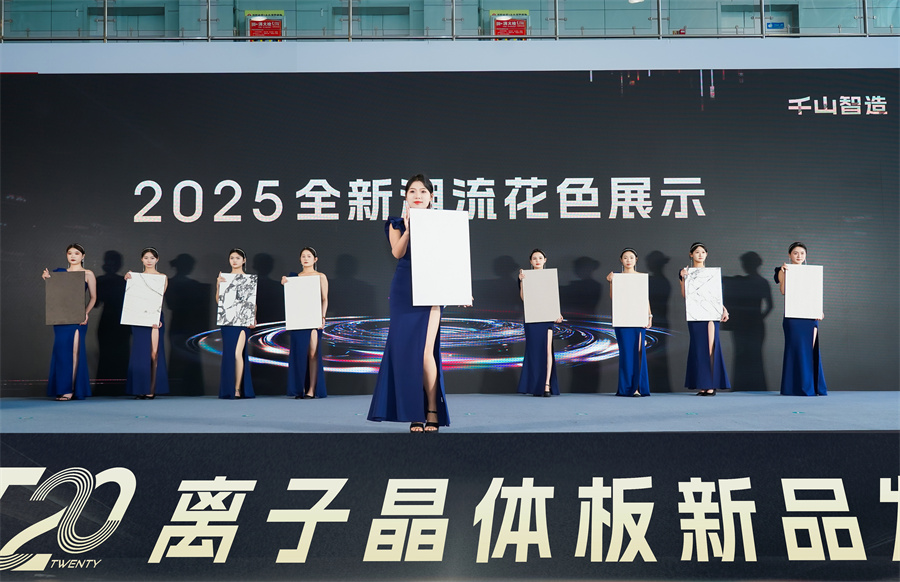 作為本次發(fā)布會的又一重頭戲,千山板材2025新品花色也成為了眾人矚目的焦點,王總揭開其神秘面紗:布紋系列—云錦灰布紋、云錦白布紋,石紋系列—鐵銹紅、輕奢水磨石、白玉洞石、水墨潘多拉、冰紋奢石,數(shù)碼系列—寶格麗白、灰影木、白影木。