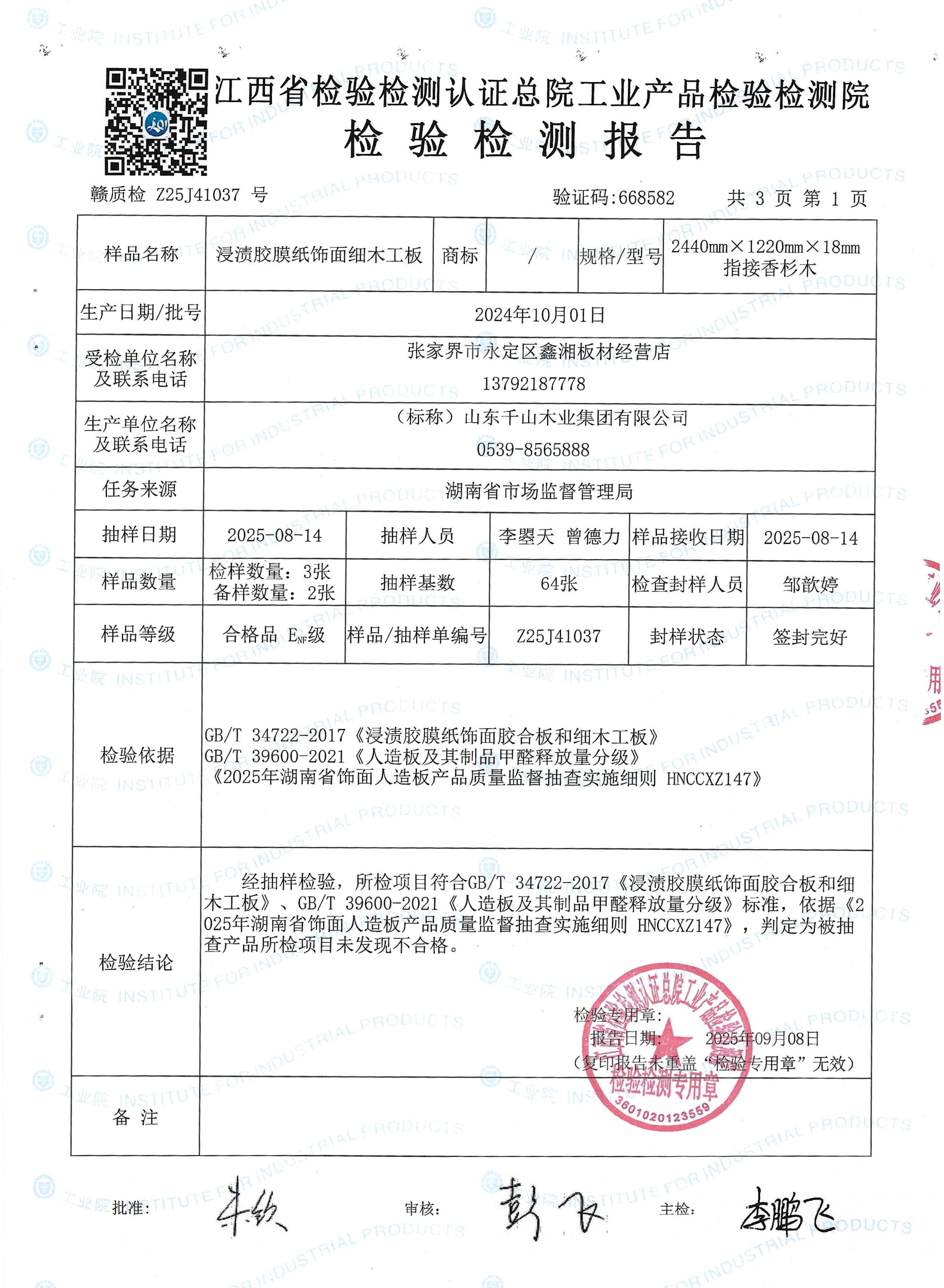 不同于企業(yè)自報的檢測數(shù)據(jù),此次抽檢是由湖南省市場監(jiān)督管理局主導(dǎo)的隨機性、公正性檢測,檢測結(jié)果更具公信力。千山板材能在此次抽檢中脫穎而出,不僅體現(xiàn)了對產(chǎn)品品質(zhì)的嚴(yán)格把控,更證明了在環(huán)保與耐用性上的實力。