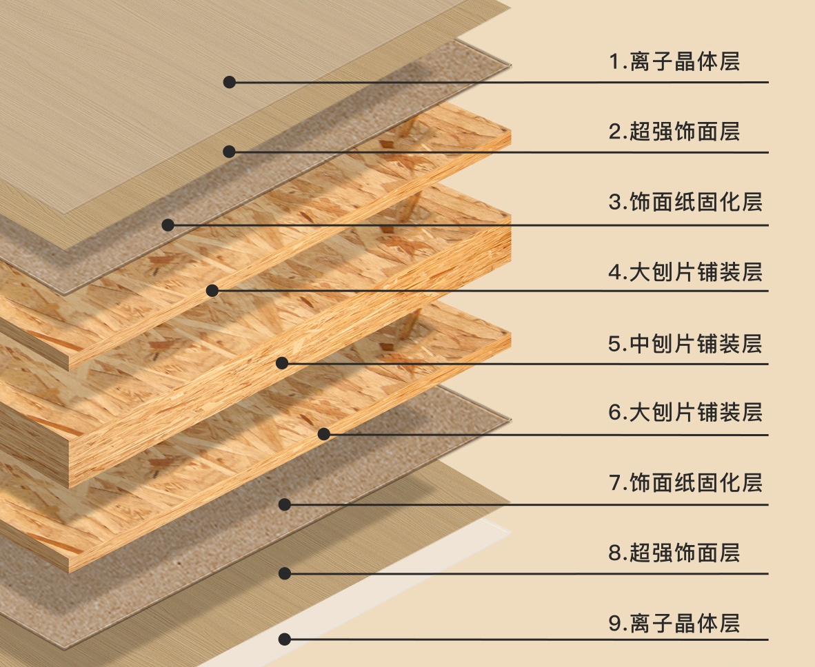 定向鋪裝芯層+固化層+離子晶體層,穩(wěn)定堅(jiān)韌結(jié)構(gòu)能夠經(jīng)受南北方環(huán)境考驗(yàn),規(guī)避門板變形和表層開裂問(wèn)題。