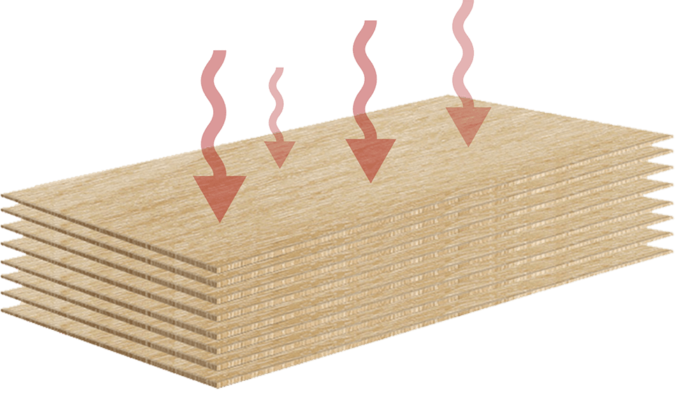 層層夾芯經(jīng)過阻燃劑的高壓浸泡長達4小時,保證木纖維的完全滲透